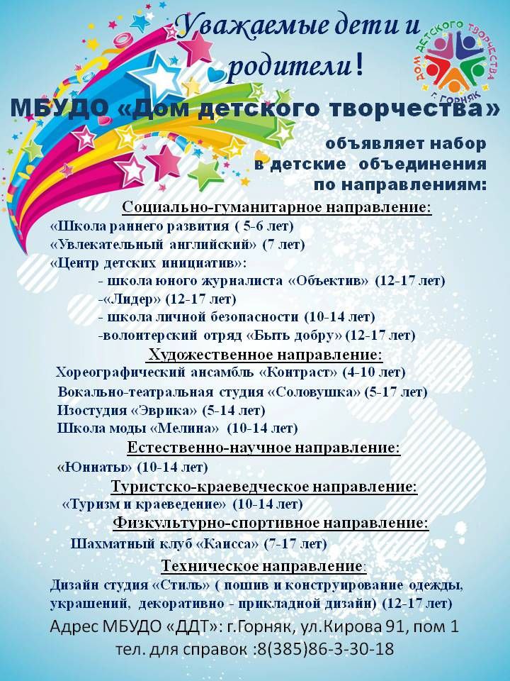 🤗Дорогие ребята и уважаемые родители! От всего сердца поздравляем вас с наступающим Днем знаний! ✨Сегодня особый день, когда дети всей страны начинают новую страницу своей жизни, полную ярких эмоций, захватывающих уроков и творческих побед. 💥Коллектив Дома детского творчества рад видеть вас в стенах учреждения и готов подарить каждому ребенку атмосферу тепла, заботы и творческого роста. Пусть учеба приносит удовольствие, новые друзья станут надежными товарищами, а каждый день вдохновляет на новые свершения и открытия. Желаем вам успехов, вдохновения и радостных улыбок на протяжении всего учебного года! 🌟Мы ждем вас с нетерпением и уверены, что впереди у нас самые интересные проекты, веселые мероприятия и грандиозные достижения!